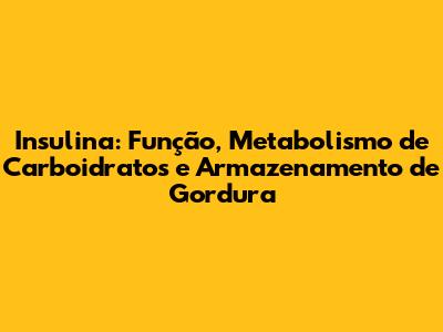 Insulina: Função, Metabolismo De Carboidratos E Armazenamento De Gordura