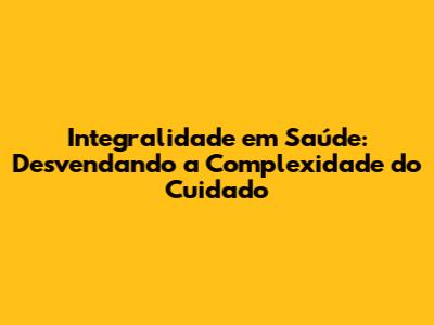 Integralidade Em Saúde: Desvendando A Complexidade Do Cuidado