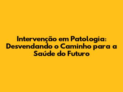 Intervenção Em Patologia: Chave Para Avanços Científicos Em Saúde