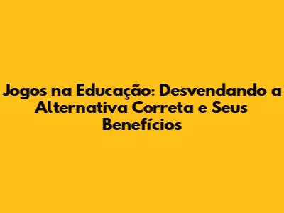 Jogos Na Educação: Desvendando A Alternativa Correta E Seus Benefícios