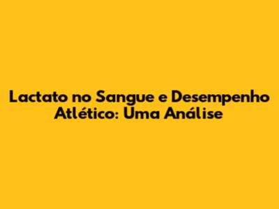 Lactato No Sangue E Desempenho Atlético: Uma Análise