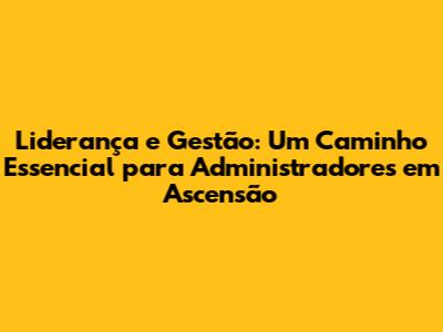 Liderança E Gestão: Impulsionando Sua Carreira Em Administração (2025)