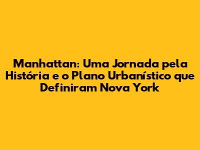 Manhattan: História E O Plano Urbanístico Que Moldou Nova York