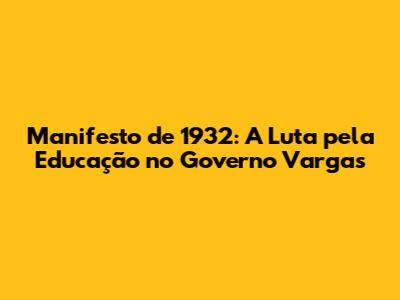 Manifesto De 1932: A Luta Pela Educação No Governo Vargas
