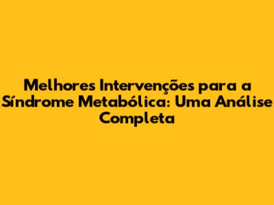 Melhores Intervenções Para A Síndrome Metabólica: Uma Análise Completa