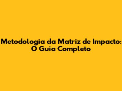 Metodologia Da Matriz De Impacto: O Guia Completo