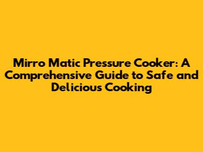 Mirro Matic Pressure Cooker: A Comprehensive Guide