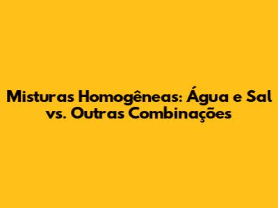Misturas Homogêneas: Água E Sal Vs. Outras Combinações