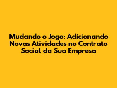 Mudando O Jogo: Adicionando Novas Atividades No Contrato Social Da Sua Empresa