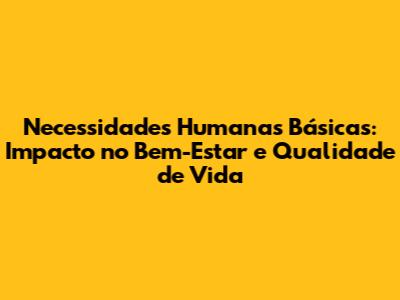 Necessidades Humanas Básicas: Impacto No Bem-Estar