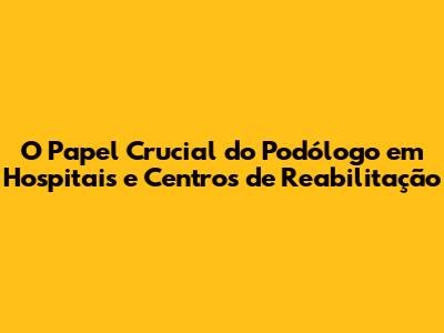 O Papel Crucial Do Podólogo Em Hospitais E Reabilitação