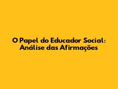 O Papel Do Educador Social: Análise Das Afirmações