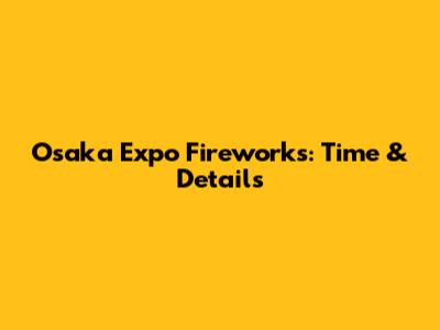 Hey everyone! Are you as hyped as I am for the Osaka Expo fireworks? It's going to be a blast, literally! Figuring out the exact time and all the juicy details can be a bit of a puzzle, so let's break it down together. I'll make sure you've got all the info you need to catch those amazing pyrotechnics and make the most of your day. We'll cover everything from the start time and where to watch, to tips for a smooth and unforgettable experience. So, grab a snack, get comfy, and let's dive into everything you need to know about the Osaka Expo fireworks display! Get ready for some serious oohs and aahs.