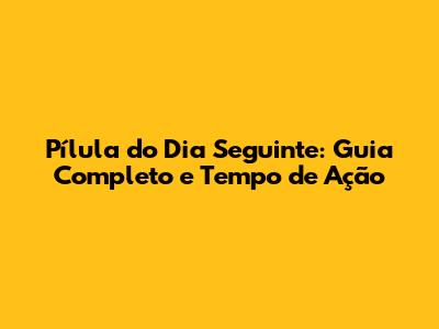 Pílula Do Dia Seguinte: Guia Completo E Tempo De Ação