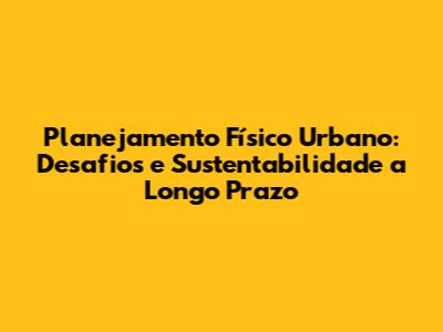 Planejamento Físico Urbano: Desafios E Sustentabilidade A Longo Prazo