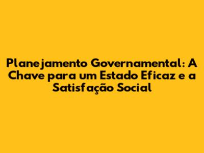 Em um mundo em constante mudança, o planejamento governamental é uma ferramenta crucial para o desenvolvimento social e econômico. Ele permite que o governo enfrente os desafios do presente e construa um futuro melhor para todos. Então, da próxima vez que você ouvir falar em planejamento governamental, lembre-se: ele é muito mais do que um conjunto de documentos – é a chave para um Estado eficaz e uma sociedade próspera.