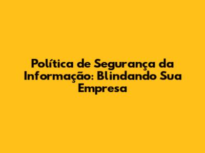 Política De Segurança Da Informação: Blindando Sua Empresa