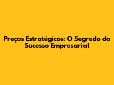 Preços Estratégicos: O Segredo Do Sucesso Empresarial