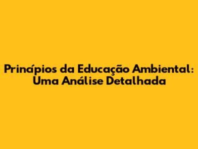 Princípios Da Educação Ambiental: Uma Análise Detalhada
