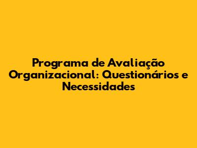 Programa De Avaliação Organizacional: Questionários E Necessidades