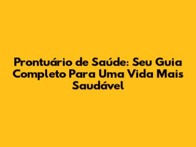 Prontuário De Saúde: Seu Guia Completo Para Uma Vida Mais Saudável