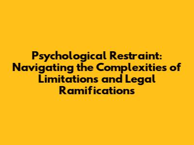 Hey everyone! Today, we're diving into a pretty heavy topic: psychological restraint. It's something that comes up in a lot of different contexts, from healthcare to law enforcement, and it's super important to understand the limits and legal stuff that goes along with it. Basically, psychological restraint involves techniques used to control or manage someone's behavior through non-physical means. Think verbal commands, environmental modifications, or even specific therapeutic interventions. But, as you can imagine, it's a bit of a minefield. So, let's break down the main areas to get a better understanding.