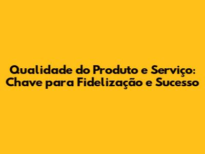 Qualidade Do Produto E Serviço: Chave Para Fidelização E Sucesso