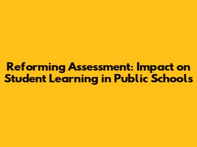 Reforming Assessment: Impact On Student Learning In Public Schools