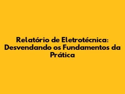 Relatório De Eletrotécnica: Desvendando Os Fundamentos Da Prática