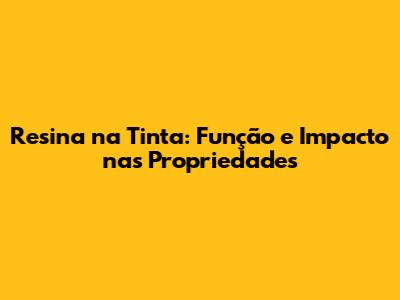 Como a Resina Contribui para as Propriedades Finais da Tinta?