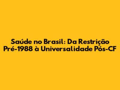Saúde No Brasil: Da Restrição Pré-1988 À Universalidade Pós-CF