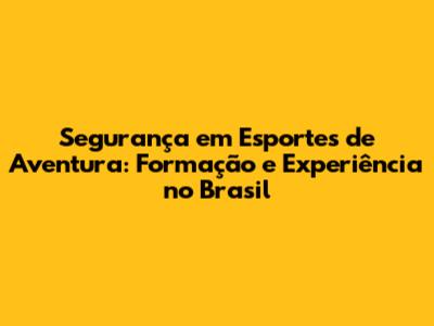 Segurança Em Esportes De Aventura: Formação E Experiência No Brasil