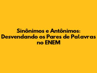 Olá, pessoal! No universo da língua portuguesa, as palavras são como peças de um quebra-cabeça, e a forma como as encaixamos pode transformar completamente o significado de uma frase. Hoje, vamos mergulhar no mundo dos sinônimos e antônimos, dois tipos de palavras que desempenham papéis cruciais na nossa comunicação e, claro, no Exame Nacional do Ensino Médio (ENEM). Entender a diferença entre eles não é apenas importante para aprimorar a escrita, mas também para interpretar textos e responder às questões da prova com confiança. Então, preparem-se para descobrir como esses pares de palavras podem ser seus melhores amigos na hora de conquistar uma boa nota!