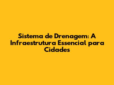 Sistema De Drenagem: A Infraestrutura Essencial Para Cidades
