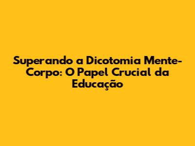 Superando A Dicotomia Mente-Corpo: O Papel Da Educação