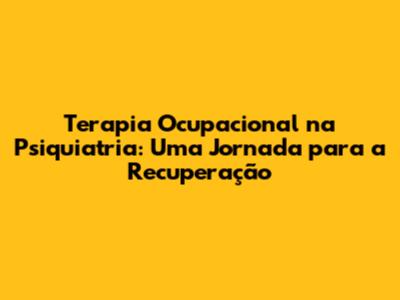 Terapia Ocupacional Na Psiquiatria: Uma Jornada Para A Recuperação