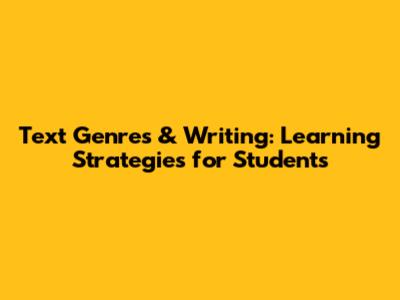 Text Genres & Writing: Learning Strategies For Students