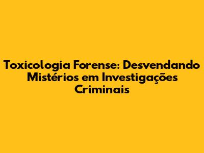 Toxicologia Forense: Desvendando Mistérios Em Investigações Criminais