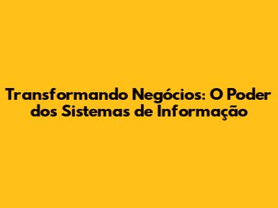 Transformando Negócios: O Poder Dos Sistemas De Informação
