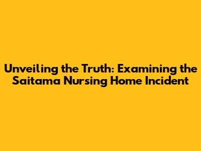 Unveiling The Truth: Examining The Saitama Nursing Home Incident