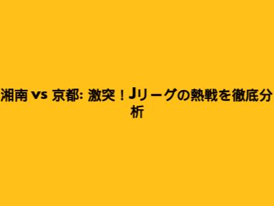 湘南 Vs 京都: 激突!Jリーグの熱戦を徹底分析