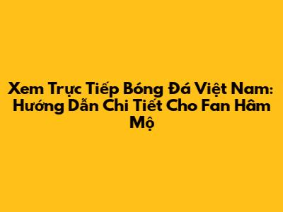 Xem Trực Tiếp Bóng Đá Việt Nam: Lịch Thi Đấu, Kênh Phát Sóng & Nhận Định